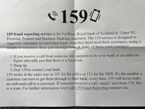 If you are a NatWest, Royal Bank of Scotland, or Ulster NI personal, premier, or business banking customer, 159 is an easy-to-remember number you can call if you think you may have been targeted by a scam.